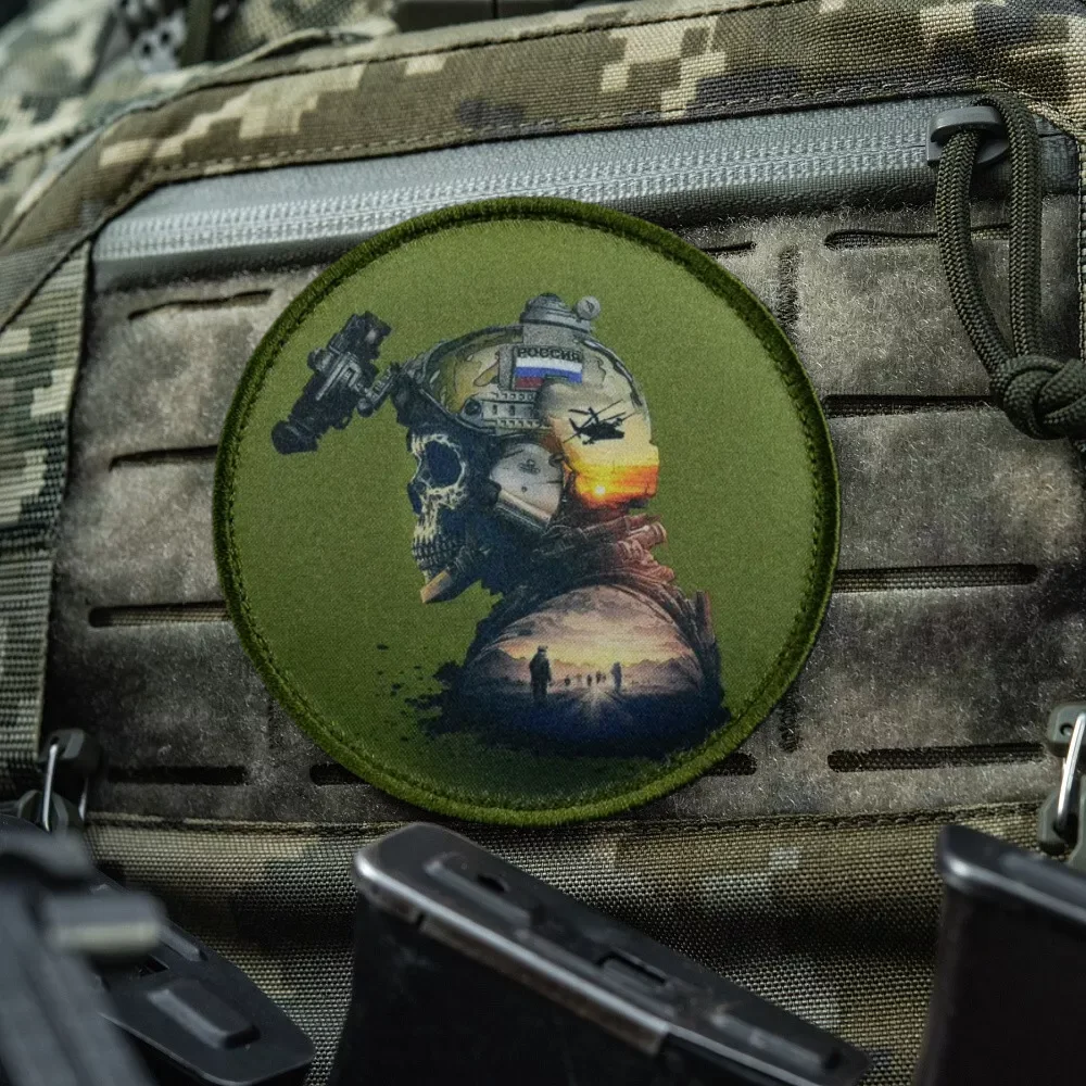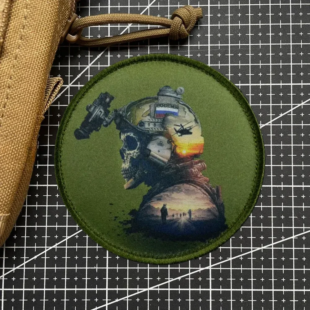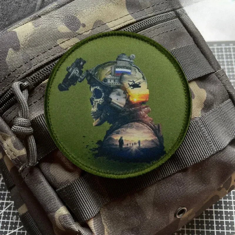 "Rusia, memoria Flash", insignia de soldado de calavera, insignia de moral, emblema de gancho y bucle, brazalete de mochila militar táctico ruso Chevron