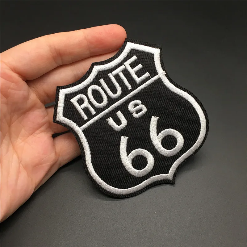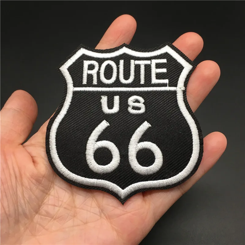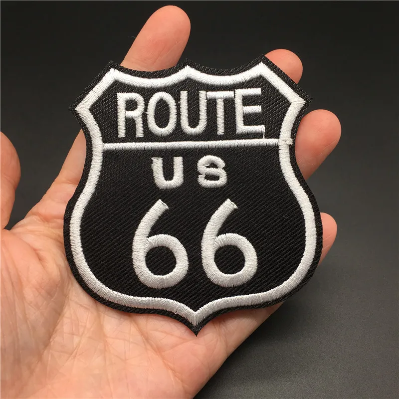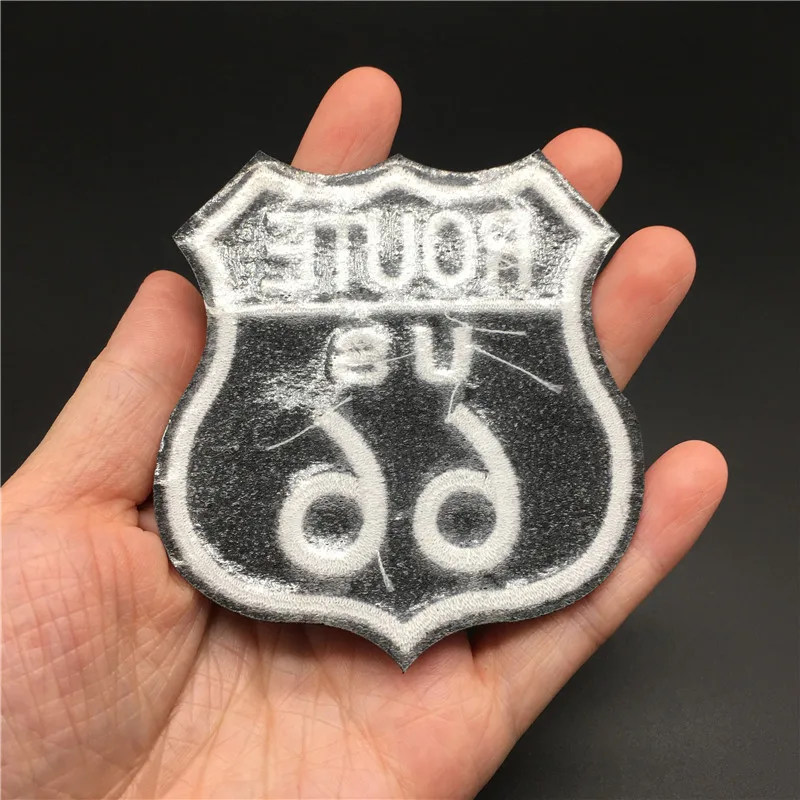 Ruta 66 Tamaño: 7,2x7,8 cm Parche para ropa DIY Parche para planchar en insignia Raya bordada para ropa Chaqueta Etiqueta Apliques de costura