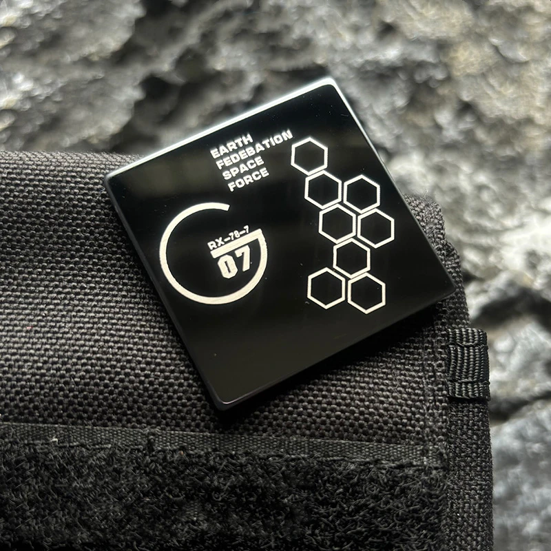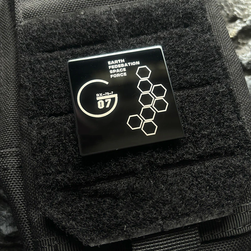 RX-78-7-Parche de Metal EFSF, insignia táctica de fuerza espacial con Base negra extendida para mochila, ropa decorativa