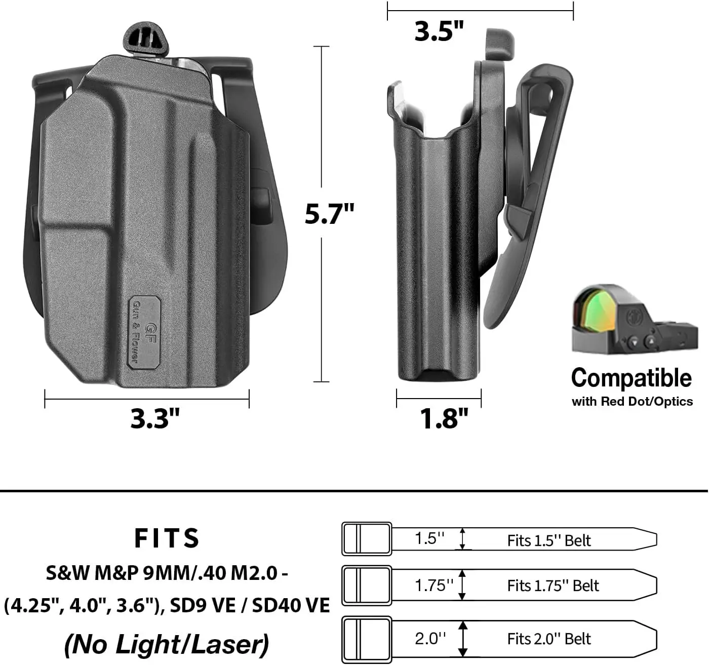 【Apto para series M&P 9/40 M2.0 y SD VE】 Moldeado personalizado para modelos Smith & Wesson M&P 9MM/.40 M2.0 (4,25", 4.0", 3,6") y SD9 VE/SD40 VE.No es compatible con M&P Shield, Shield EZ o pistolas con láseres/luces integrados.