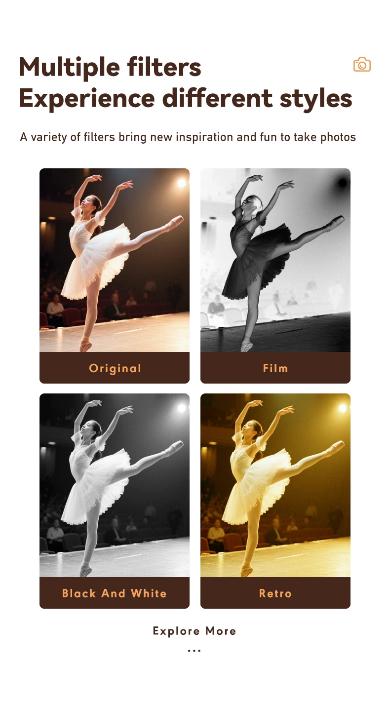1.Imágenes de alta calidad: con una resolución de 20 megapíxeles, ofrece imágenes de alta calidad con una textura fiel a la vida.Incluso con un cuerpo compacto, puede capturar fácilmente fotografías claras y hermosas. 2.Pantalla superior: Equipado con una pantalla a color IPS de 0,96 pulgadas, ofrece imágenes claras.Admite una vista previa, reproducción y filtros de disparo en tiempo real, lo cual es conveniente y agradable para los ojos. 3.Excelente rendimiento nocturno: la luz de relleno LED incorporada le permite manejar entornos con poca luz con facilidad, lo que garantiza excelentes tomas incluso de noche. 4.Duración y carga flexibles de la batería**: Tiene una batería de iones de litio de 180 mAh y admite disparos mientras se carga.Se puede cargar a través de teléfonos móviles, bancos de energía, etc.Puede grabar vídeos durante 50 minutos y tomar fotografías continuas durante 120 minutos. 5.Ricos efectos de filtro: viene con una variedad de filtros como películas, blanco y negro y vintage, lo que agrega creatividad y diversión a la fotografía. 6.Diseño portátil y elegante: De tamaño compacto (44x27x23 mm) y con un peso de solo 17,5 g, se puede usar como colgante para collares o llaveros, lo que facilita su transporte.Con una apariencia de estilo retro, con textura de cuero y bordes metálicos en tonos plateados, está disponible en varios colores, incluidos Marrón Vintage, Verde Algas, Negro Fantasma y Blanco Espacio. 7. Parámetros funcionales superiores: modelo de producto S150, resolución 1920x1080P, grabación en bucle compatible, capacidad máxima 128G, formato de foto JPG, conexión de datos tipo C y formato de compresión H.264.