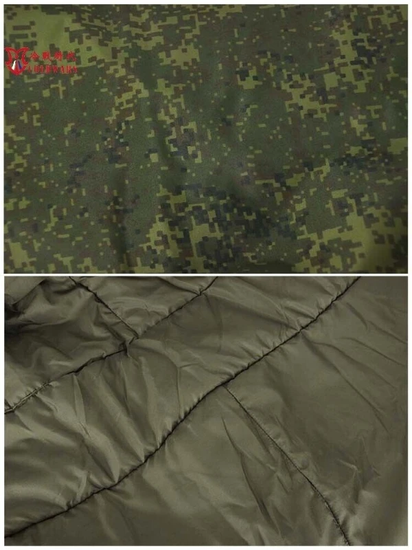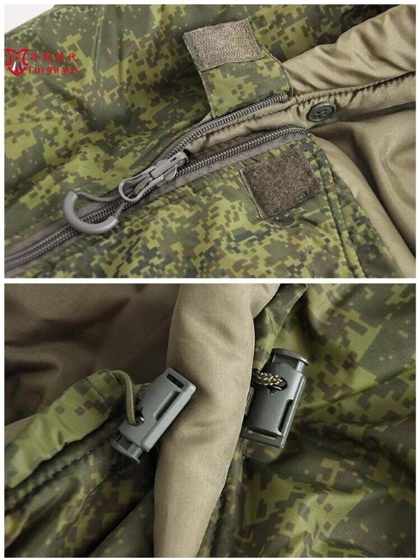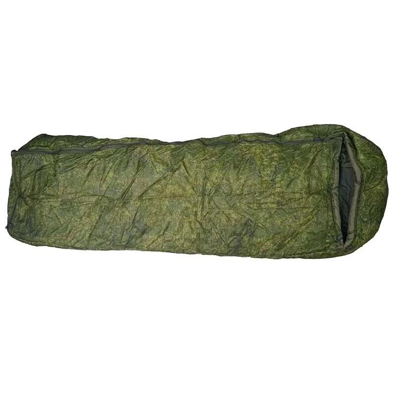 Saco de dormir frío de un solo soldado tipo Rusia 20. La superficie está hecha de camuflaje digital EMR Khao Tula material de nylon impermeable de alta densidad. Acolchado de algodón, ligero y cálido. El forro es de tafetán con un forro de poliéster/algodón extraíble, que se puede colgar dentro del saco de dormir con un botón para facilitar la limpieza. El peso de la bolsa es de aproximadamente 2,7 kilogramos, y el material utilizado es muy sólido. Diseño de sobre con solapa, lado con cremallera completa se puede abrir y cerrar fácilmente. Bolsa de dormir con bolsa de compresión de embalaje externo, fácil de organizar, la bolsa de compresión también tiene una correa de gancho que puede ser conveniente para llevar y combinar con la mochila. Este saco de dormir generalmente se usa con una almohadilla a prueba de humedad, una sola capa y otro soporte, y con ropa interior de diferentes grados de frío con, en la zona de temperatura de 15 a-30 grados Celsius en el uso de diferentes condiciones de aire, temperatura cómoda: 0 ℃ Temperatura límite: ℃-30 (usando lv1, 2, 8 tres capas de ropa, con el saco de dormir, con el exterior de la funda de tienda militar a prueba de viento)