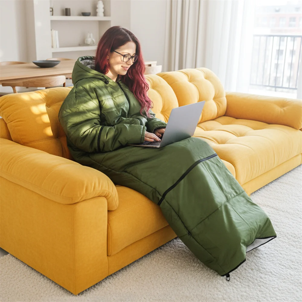 Las aberturas flexibles para los brazos y la funda para los pies con cremallera permiten que este saco de dormir se use como prenda térmica o se use tradicionalmente para descansar, ofreciendo dos funciones prácticas en un solo producto.