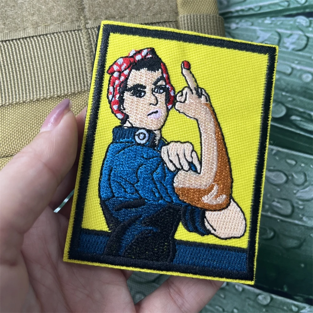 ¡Se puede hacer! Parches de insignia de moral de dedo medio, pegatinas bordadas de gancho y bucle, mochila táctica, Rosie Waved Her