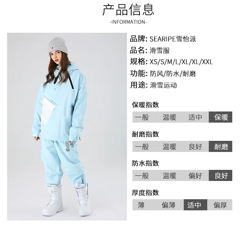 SEARIPE-traje de esquí para mujer, abrigo para exteriores, traje de esquí para hombre, chaqueta de invierno, cortavientos de Snowboard transpirable impermeable para mujer, Unisex