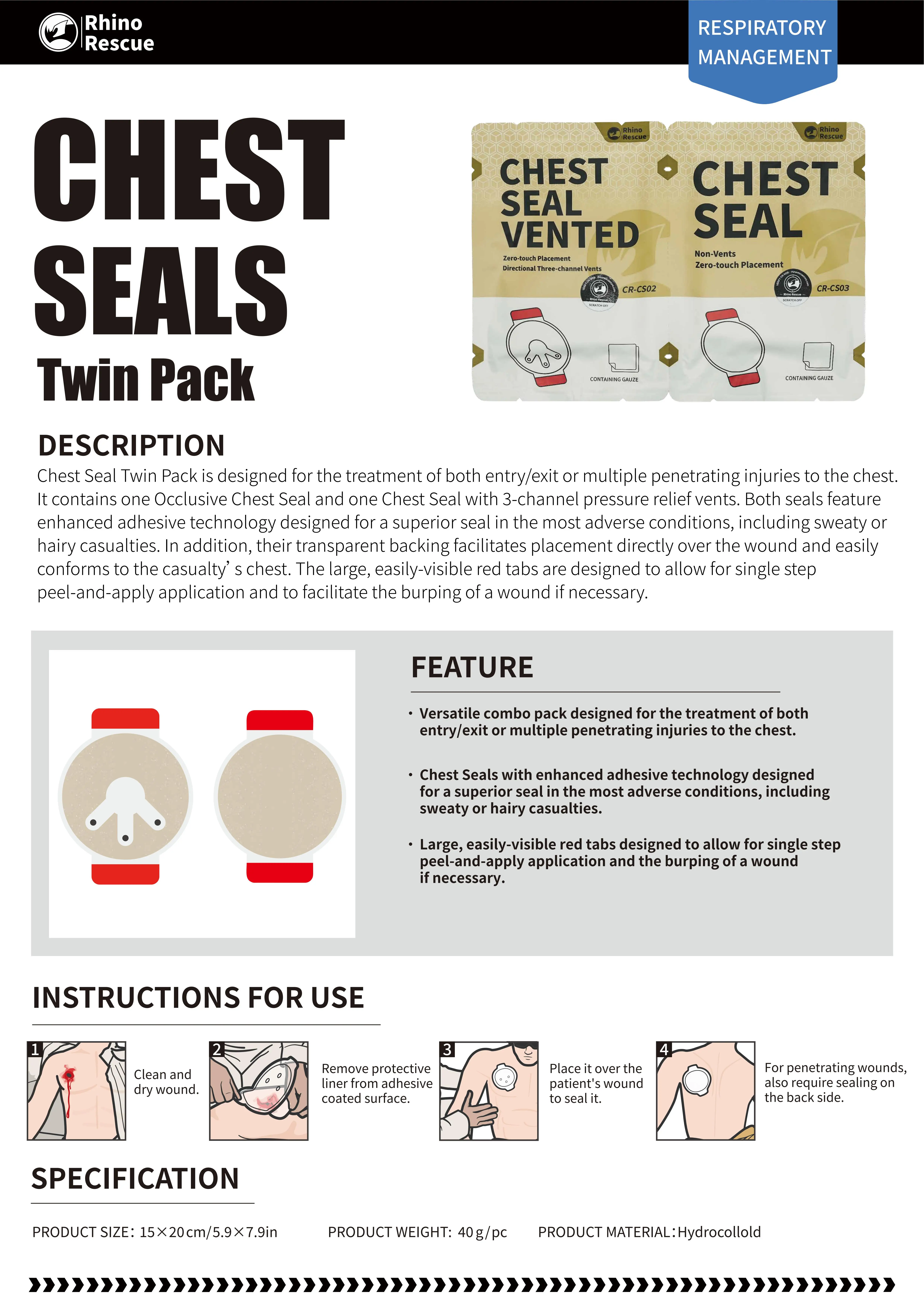 El Chest Seal Twin Pack está meticulosamente diseñado para el tratamiento de heridas de entrada/salida o múltiples lesiones torácicas penetrantes.Este kit consta de un sello torácico oclusivo y un sello torácico equipado con rejillas de ventilación de alivio de presión de tres canales.Estos sellos emplean tecnología adhesiva avanzada, lo que garantiza un sellado excepcional incluso en las condiciones más duras, como en víctimas sudorosas o hirsuteas.