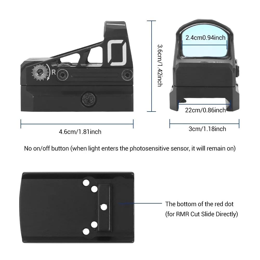 [Precisión mejorada]-rápido y fácil de cero mientras sostiene un fuerte retroceso, este Sensor fotosensible de alcance de punto rojo promueve la rápida adquisición de objetivos con un punto 3 MOA nítido y claro.