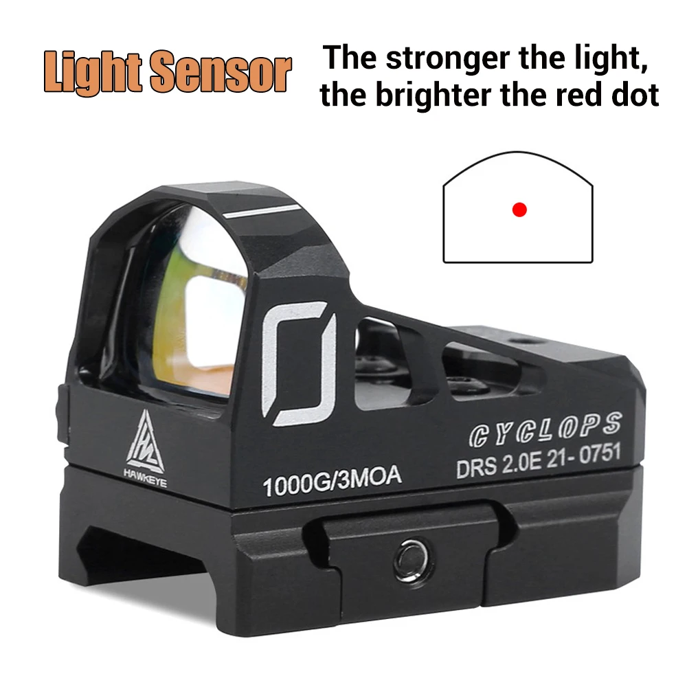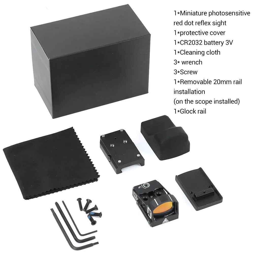 Sensor de luz mira de punto rojo Mini pistola Reflex abierta compacta vista con LED 3 MOA punto rojo traje para 20mm Rail pistola Glock 17 19