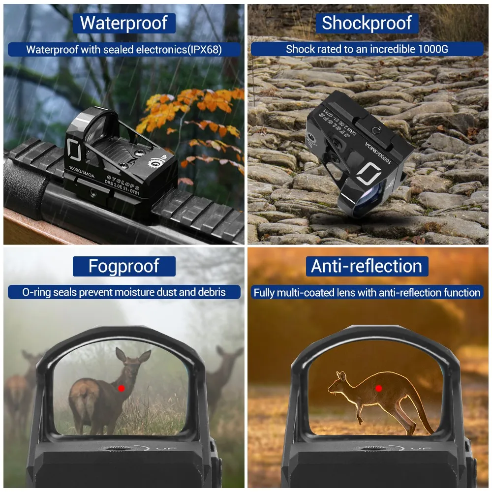 [Óptica de alta gama]-el reflejo Sight 3 MOA a prueba de golpes ha sido probado durante 1000 rondas en todo tipo de pistolas sin perder su cero.