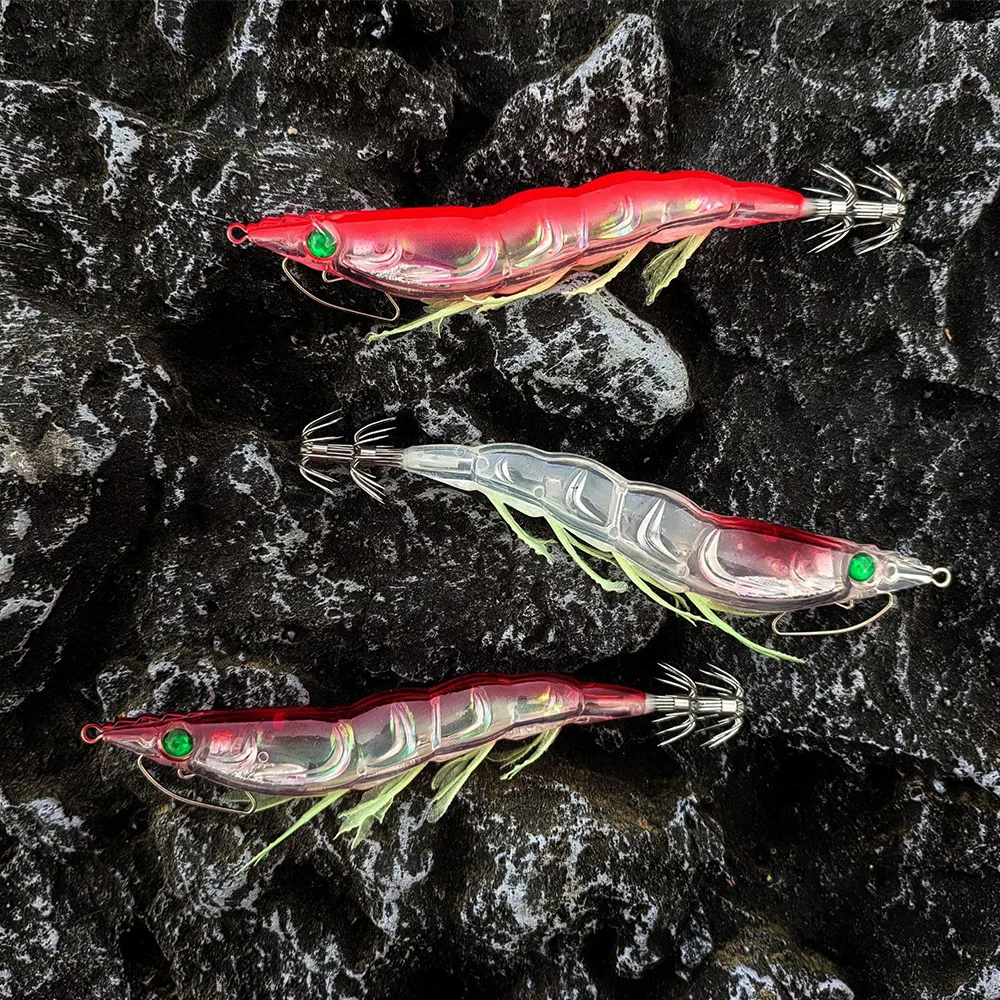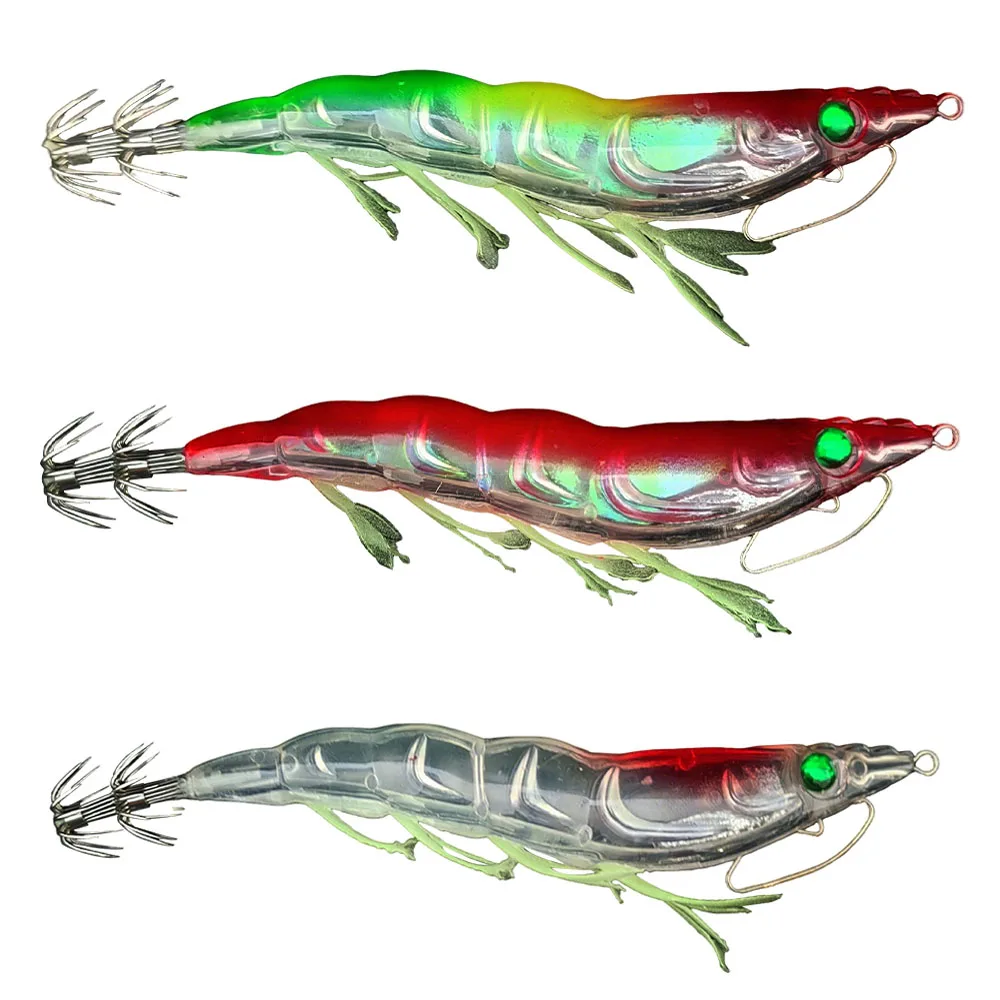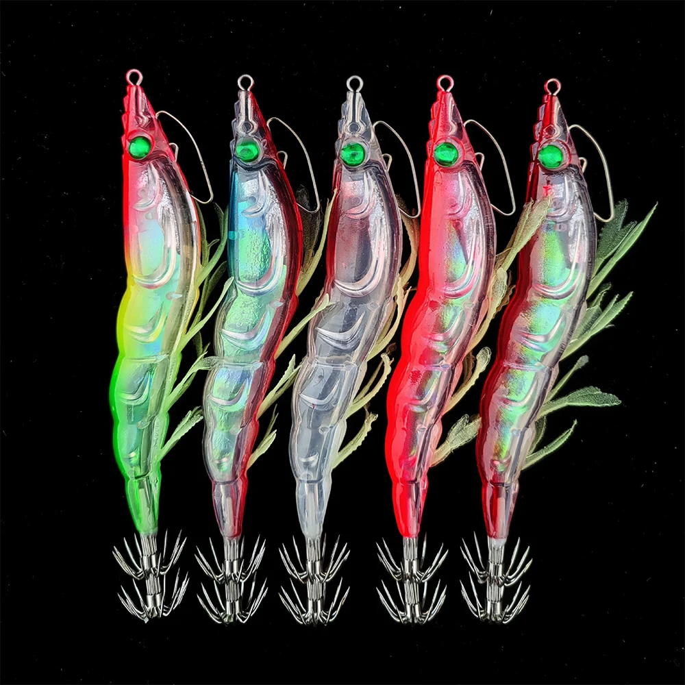 Anzuelo de madera para calamar y camarones, cebo de pesca, anzuelo luminoso para cebo de calamar, anzuelo Artificial para calamar y calamar, señuelos de plantilla de calamar