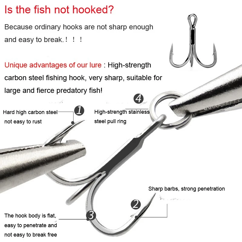 2) Exterior súper realista-construido con materiales de alta calidad de Japón, diseñado por expertos y rigurosamente probado, Ojos de aspecto realista en 3d y cuerpo holográfico realista lo hacen un pez Real.