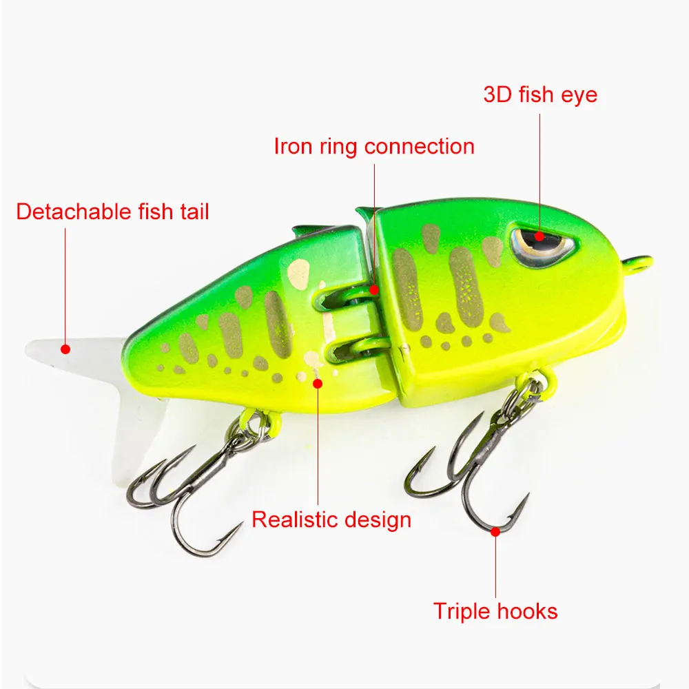 El diseño de 2 articulaciones produce una acción de natación en forma de S única y flexible, lo que dificulta que el lubina se sacuda durante la pelea.