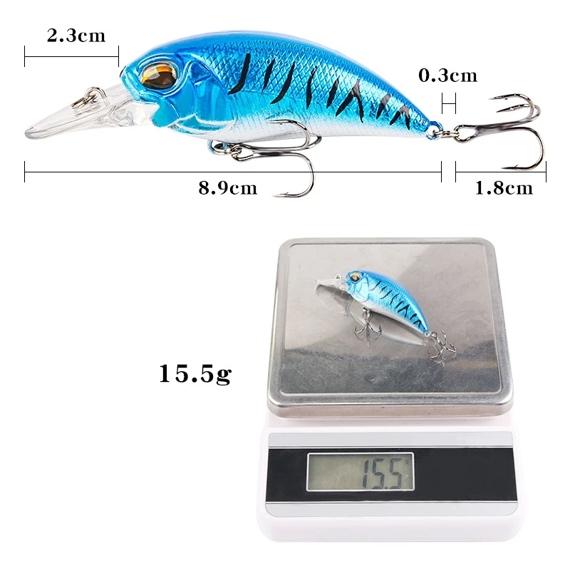 Señuelo de pesca flotante, cebo duro de manivela, calidad profesional, profundidad de 15,5-2,0 m, modelo caliente, 89mm, 2,5g, 7 colores, nuevo