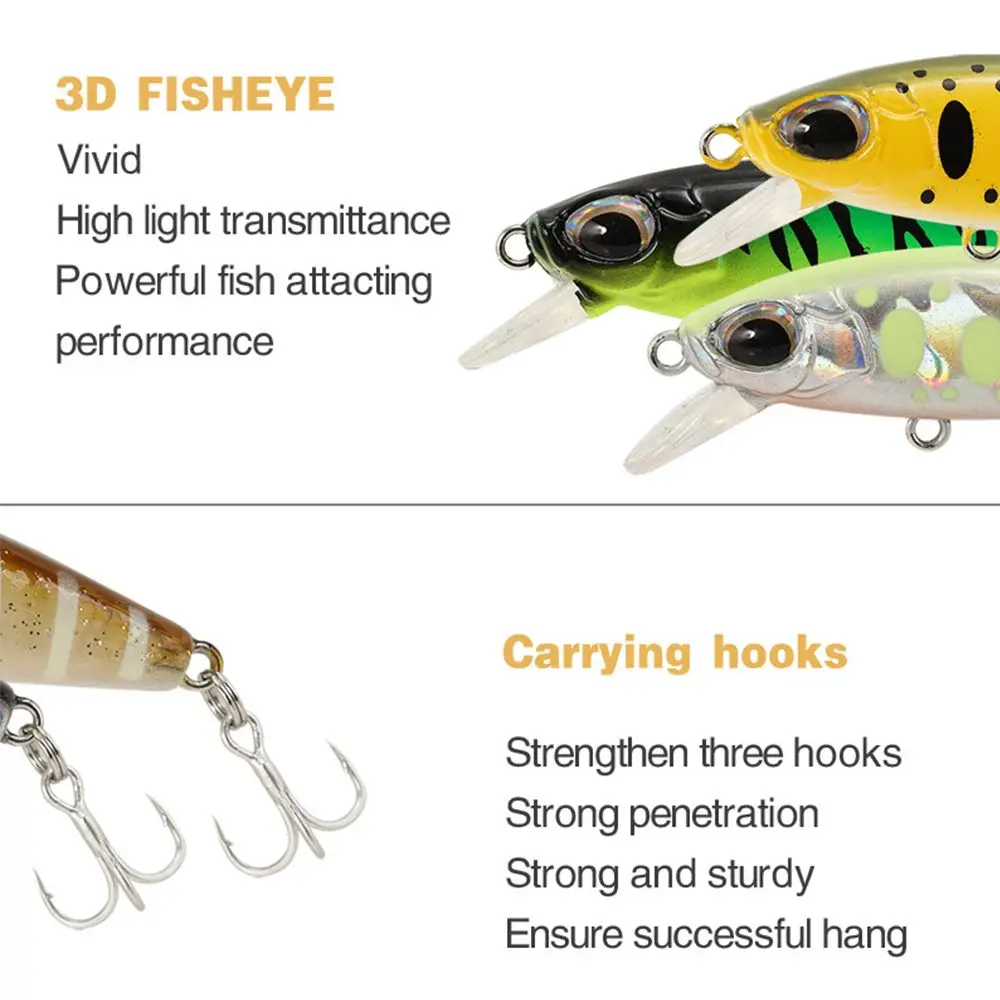6. Este Tipo de cebo tendrá una acción de natación animada en el agua, lo que atraerá la atención y el ataque de los peces.