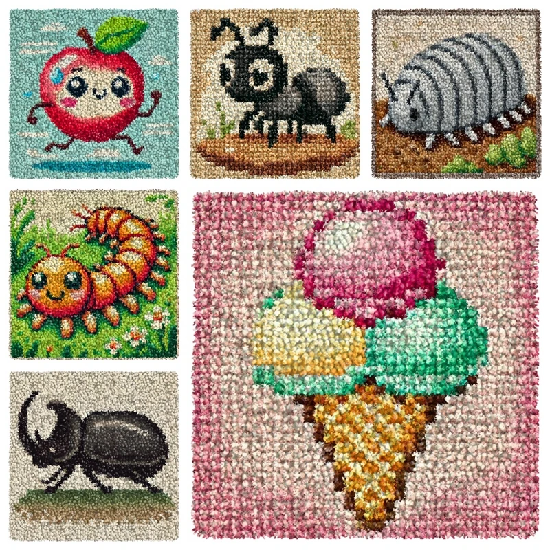 Cartoon Series Animal Latch Hook Embroidery Pillow Knotted Stitch Embroidery Kit Hand Hooks Knitted Carpet Latch Hook Rug Kits
