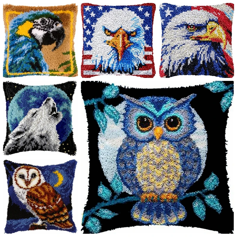 Bird Series Eagle Owl Parrot Latch Hook Mat Kits Embroidered DIY Hand Knitted Button Pad Package Smyrna Pillowcase Knot Pillow