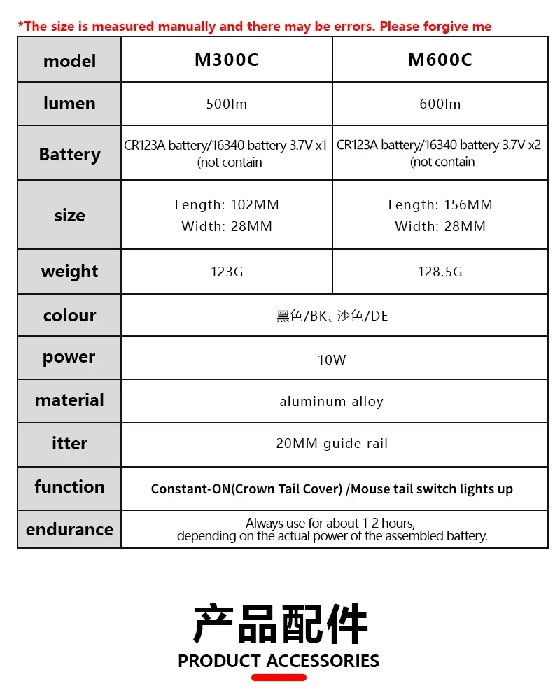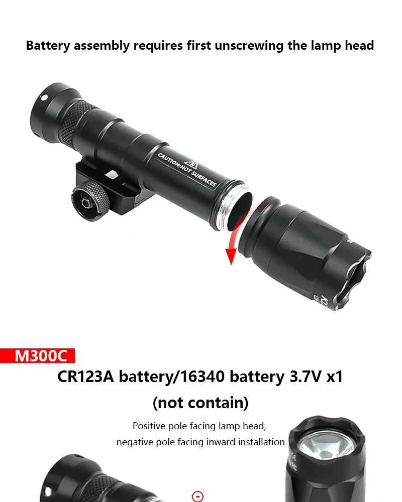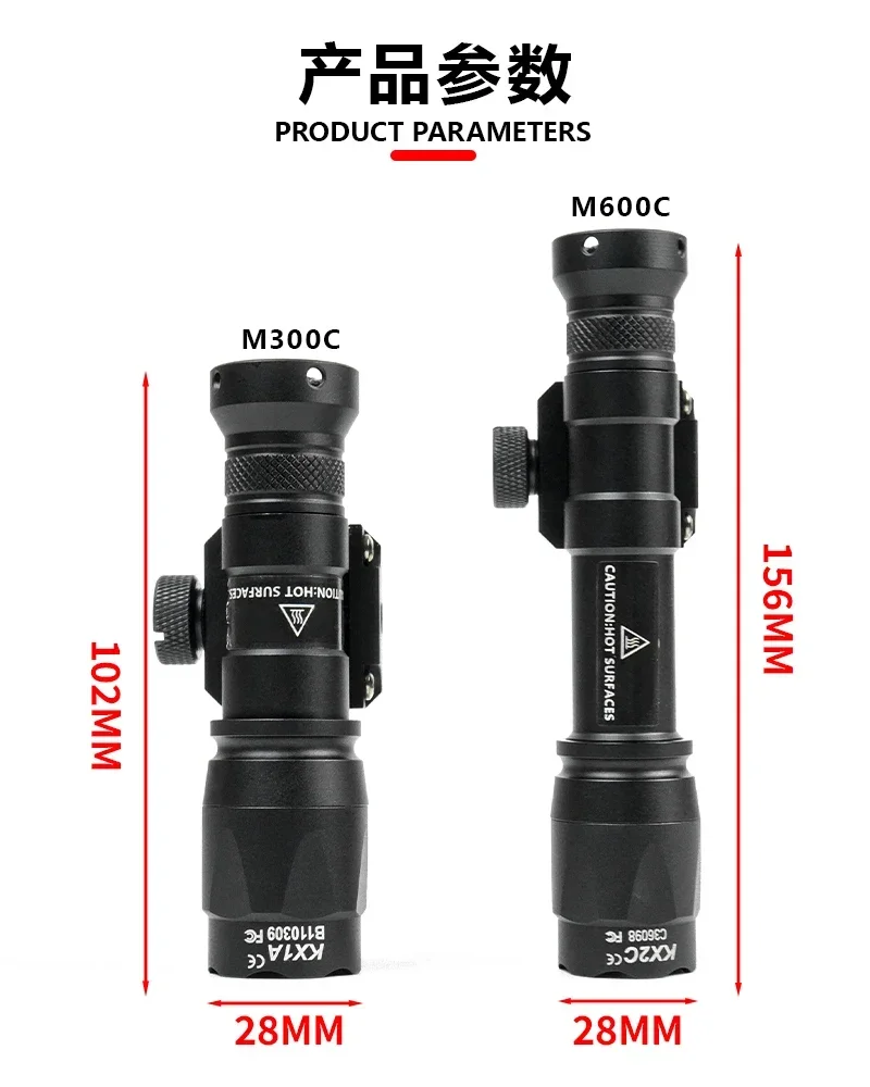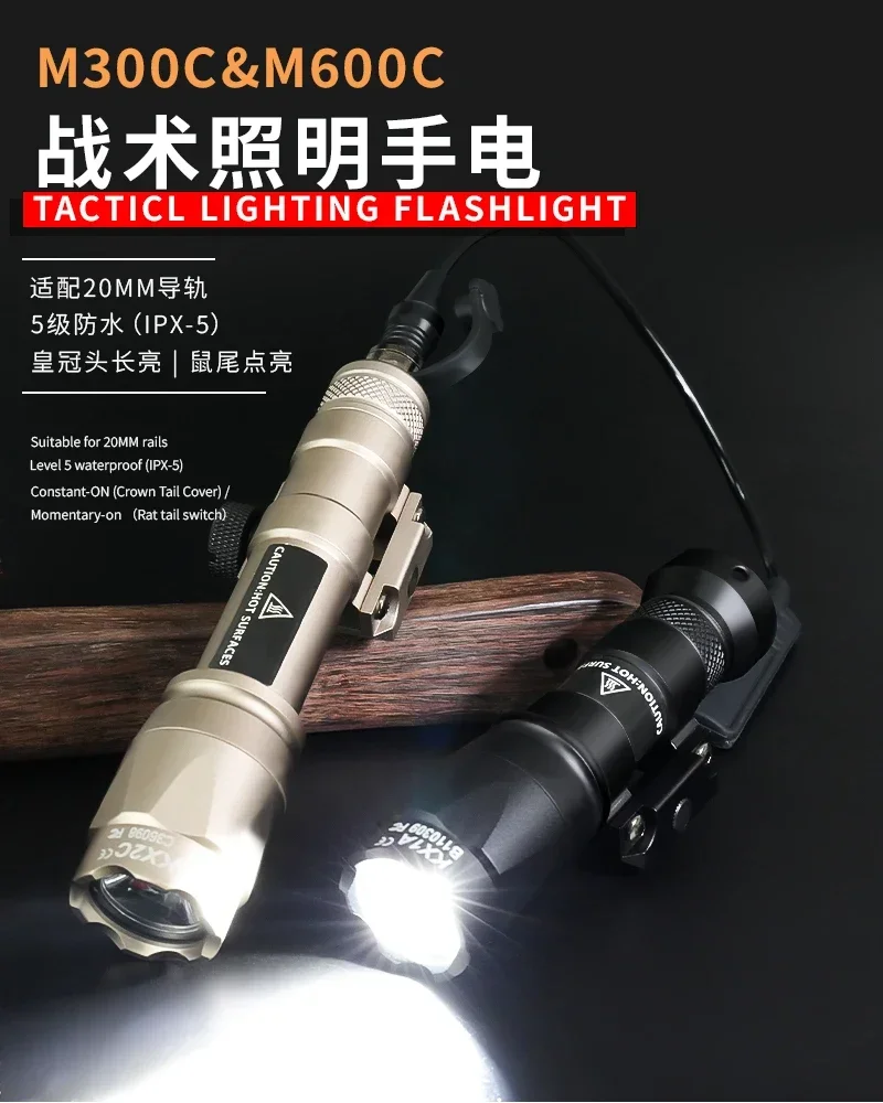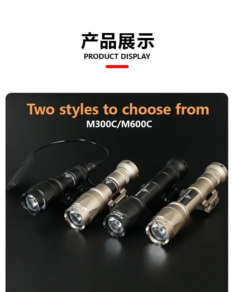 SF M300C M600C Airsoft linterna táctica M600 M300 arma de caza lámpara de explorador con interruptor de presión momentáneo compatible con riel de 20mm