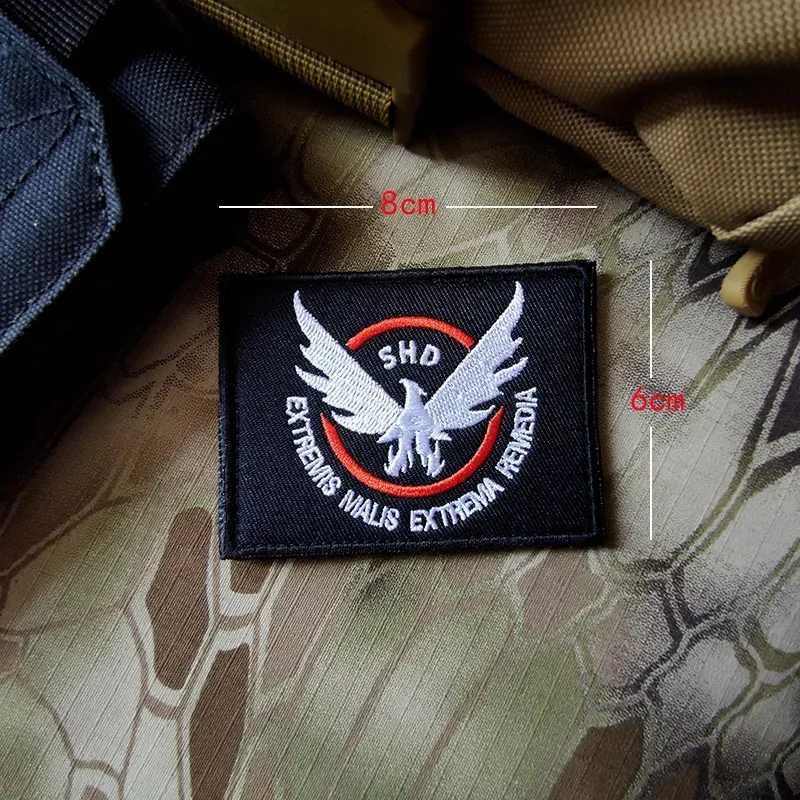 SHD The Division moral parches tácticos bordados, Parche de gancho y bucle, insignia de juego de rol de disparo militar, pegatinas de mochila