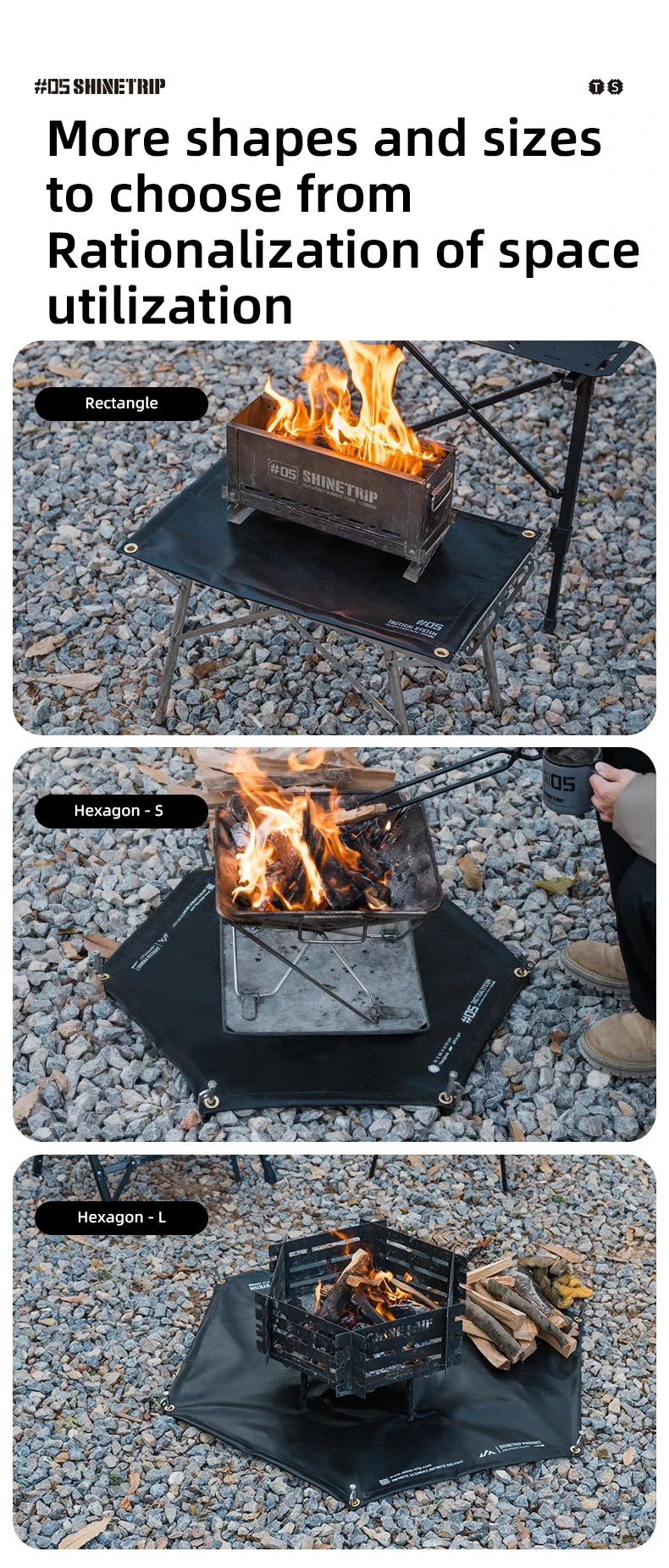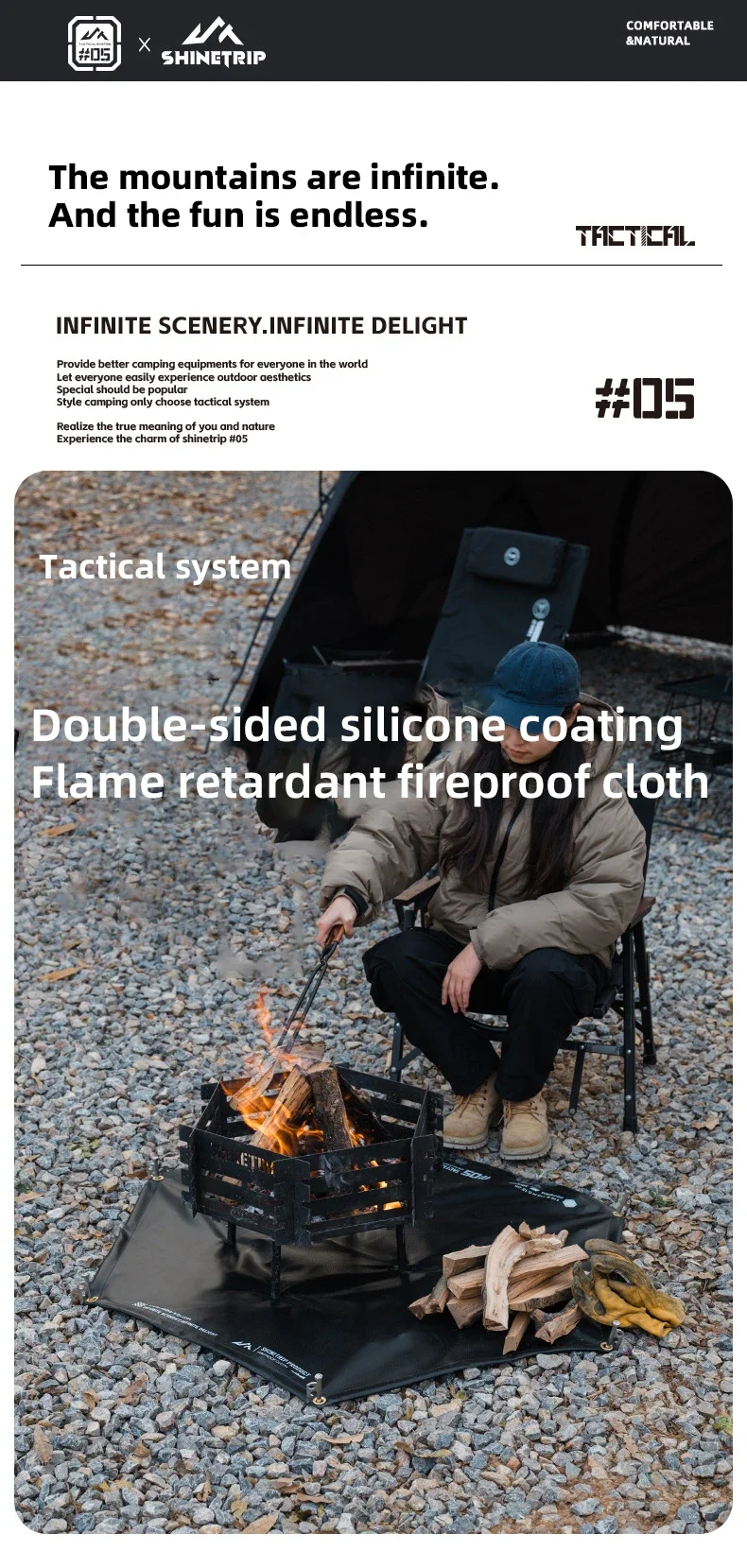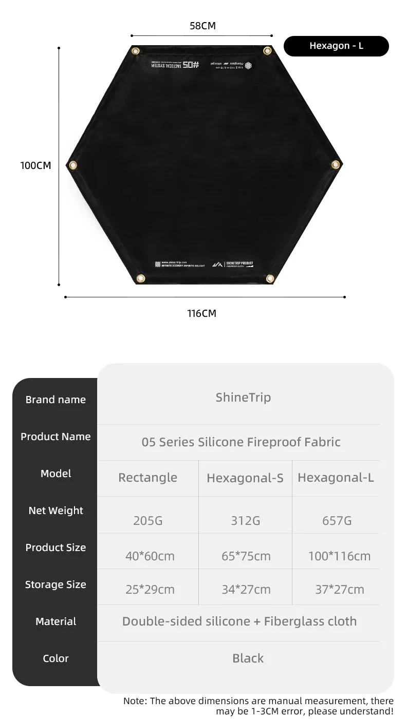 ShineTrip05 serie táctica viento ennegrecido barbacoa al aire libre estera aislante para acampar lámina ignífuga de silicona ignífuga resistente al fuego