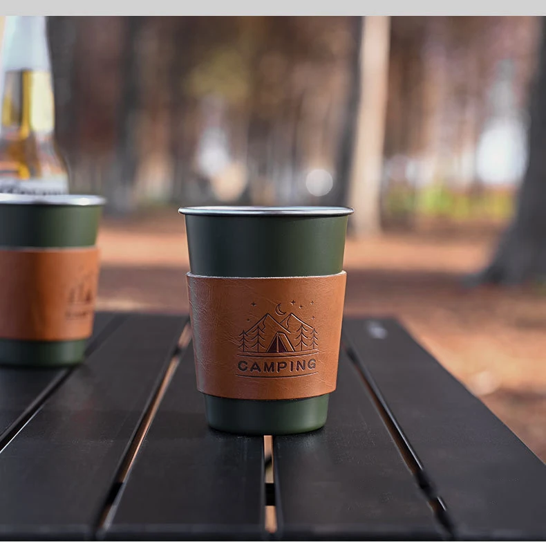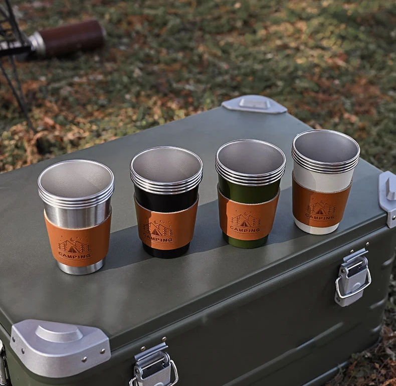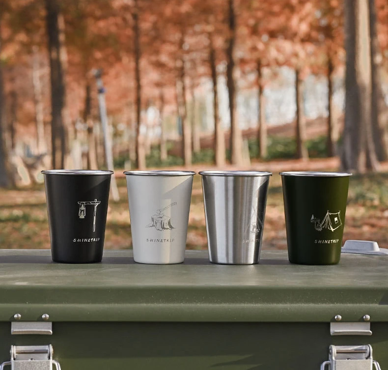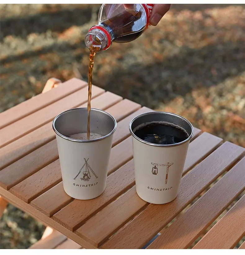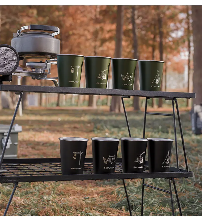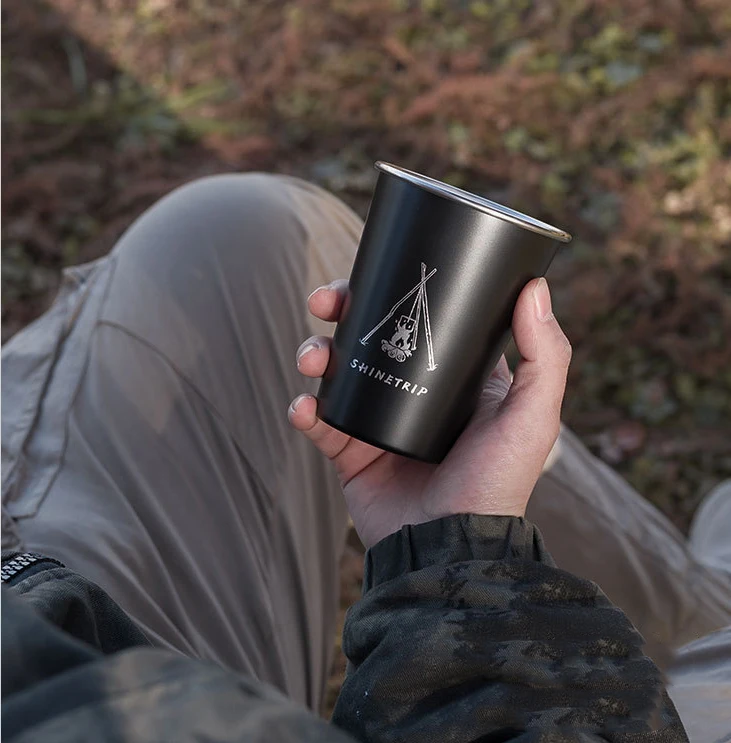 ShineTrip-Juego de tazas de acero inoxidable para acampar, taza de café de viaje al aire libre de 350ml, cerveza para bebidas calientes, Plegable, portátil con bolsa