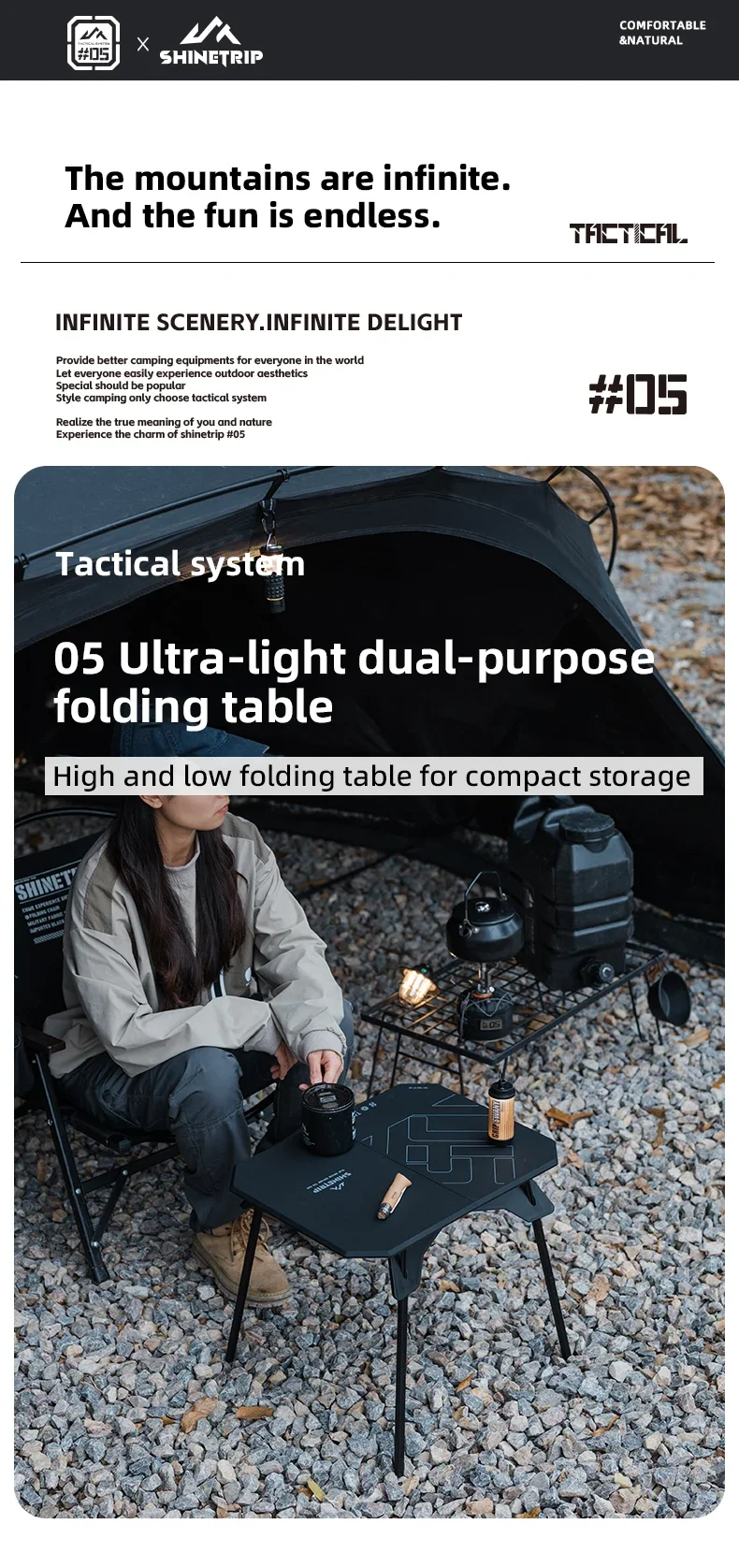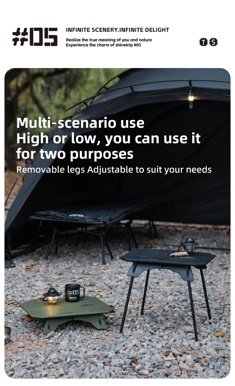ShineTrip Serie 05 Mesa ultraligera de doble propósito Mesa portátil para acampar al aire libre Mesa plegable de escritorio Abs y soporte de aluminio