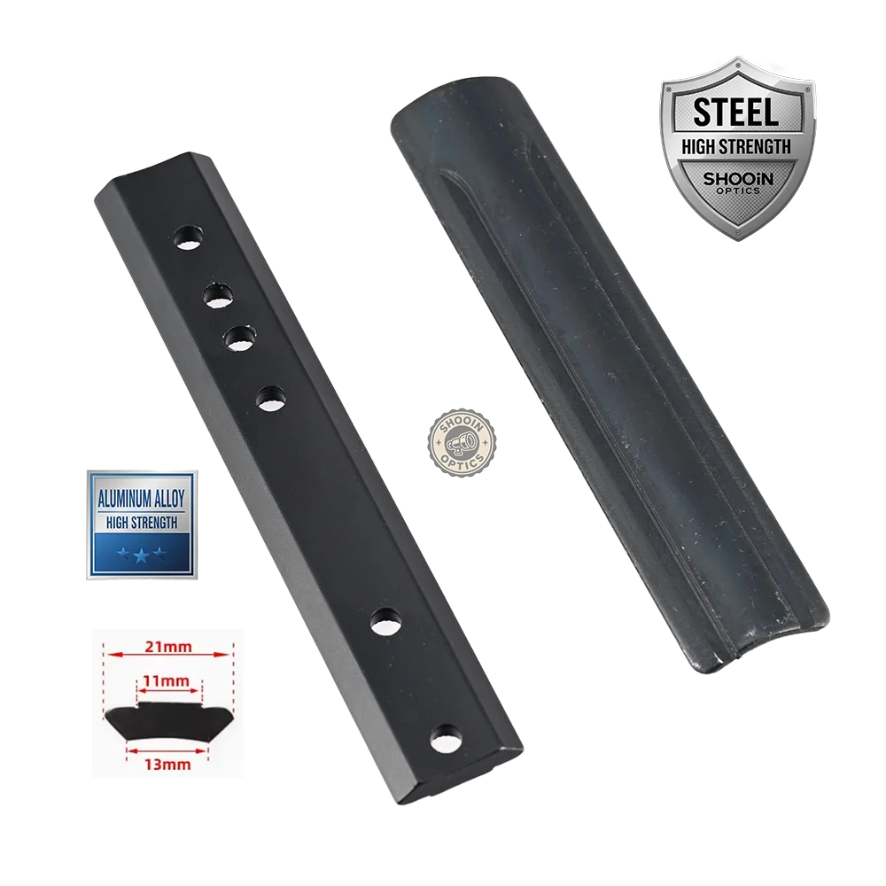 La base de acero con montura de cola de milano de 11 mm Shoin Optics Red Dot Scope es un soporte ajustable de alta calidad diseñado para fijar de forma segura su visor de punto rojo a su rifle o escopeta. Cuenta con una construcción de acero duradera y un riel estilo Weaver, lo que lo hace compatible con una variedad de miras de punto rojo.