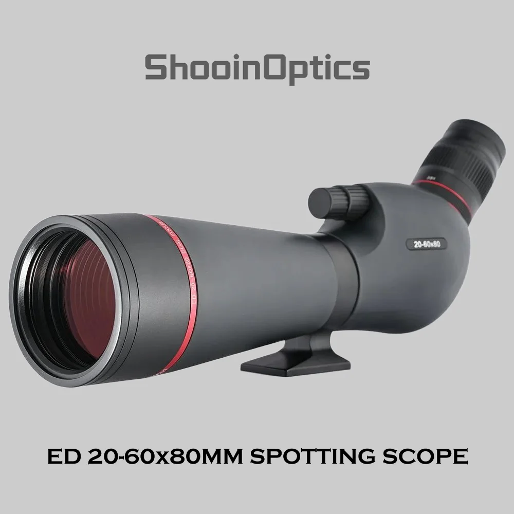 El telescopio para lentes Shooin Optics 20-60x80 ED es un instrumento óptico avanzado, diseñado para entusiastas del aire libre, cazadores y cuidadores de aves que requieren un rendimiento de alta calidad en una forma compacta y duradera.Con un potente rango de aumento de 20-60x, este monocular ofrece una claridad y brillo incomparables, lo que le permite observar objetos distantes con alta precisión.Su lente de dispersión extrabaja (DE) de 80 mm ofrece imágenes de alta definición, al tiempo que reduce las aberraciones cromáticas para una visualización más nítida y precisa.