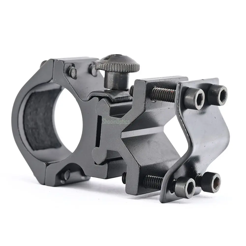 El soporte de anillo de barril del adaptador Shooin Optics es un soporte versátil y duradero que se puede utilizar para conectar linternas y miras láser a una variedad de armas de fuego. El soporte está hecho de aluminio de calidad aeronáutica para mayor resistencia y durabilidad, y presenta un acabado en negro mate para una apariencia discreta. El soporte es fácil de instalar y quitar y mantiene de forma segura su linterna o mira láser en su lugar. El soporte es compatible con barriles con un diámetro de 18-25 mm, lo que lo convierte en una excelente opción para una amplia gama de armas de fuego.