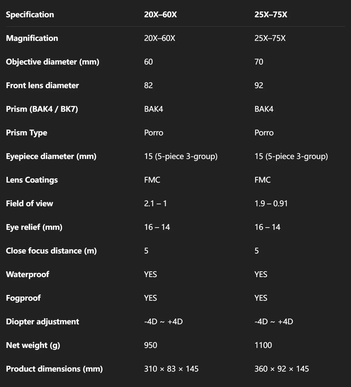 Shooin Spotting Scope SCY 20-60x60 25-75x70 FMC Bird Watching Telescope Monocular