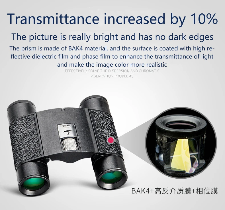 Shuntu ED 8x20 10x25 binoculares impermeable SMC revestimiento ocular Bak4 prisma óptica telescopio plegable portátil para acampar caza