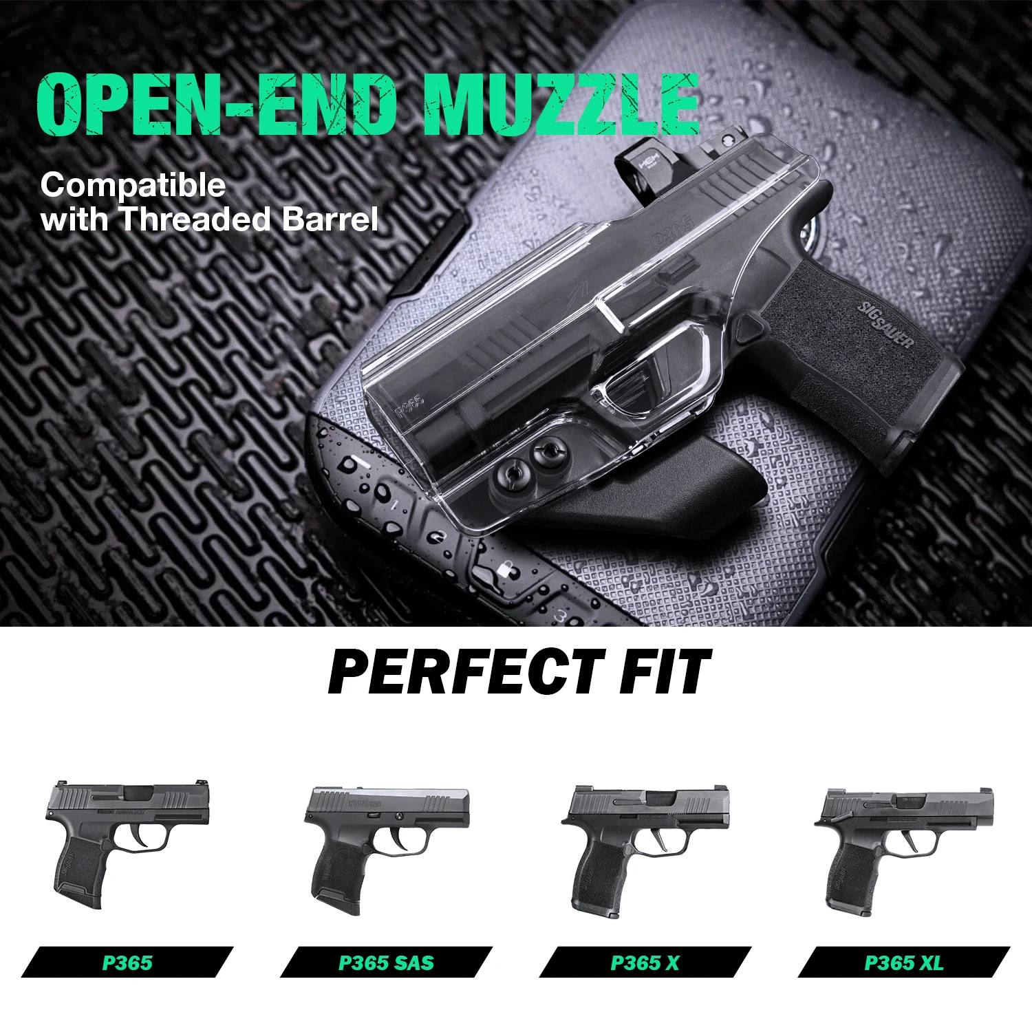 FABRICADO EN POLIMERO CLARO PREMIUM DE 0,09 PULGADAS: La funda para Sig P365 está hecha de material polimérico transparente de primera calidad de 0,09" (2,5 mm), que posee caracteres resistentes, duraderos, impermeables, lavables y livianos.