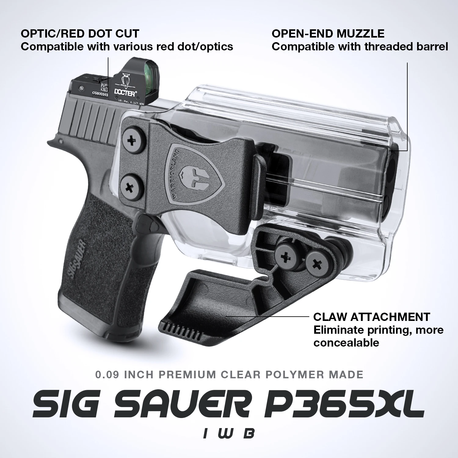COMPATIBILIDAD: La funda P365XL es compatible con Sig Sauer P365/P365 SAS/P365X/P365XL - La longitud de la funda está hecha para la longitud del cilindro P365XL - No es compatible con cualquier láser/luz