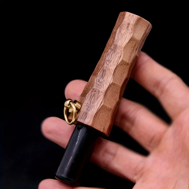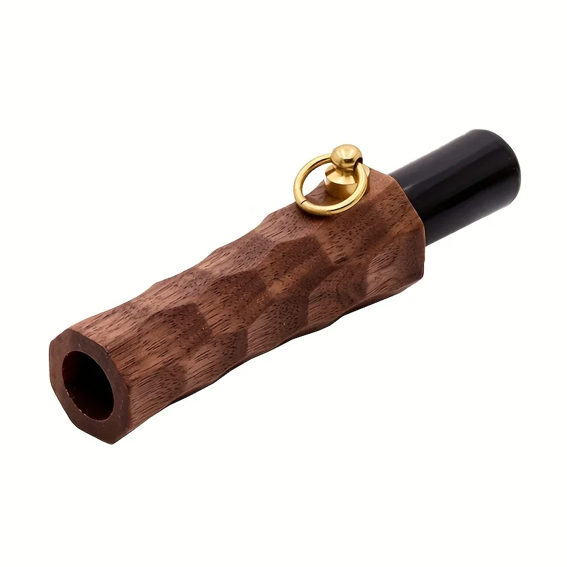 Silbato de madera de nogal para llamadas de cuervo con llavero en tono dorado, ideal para llamadas de juegos al aire libre, entrenamiento de aves y atraer faisán