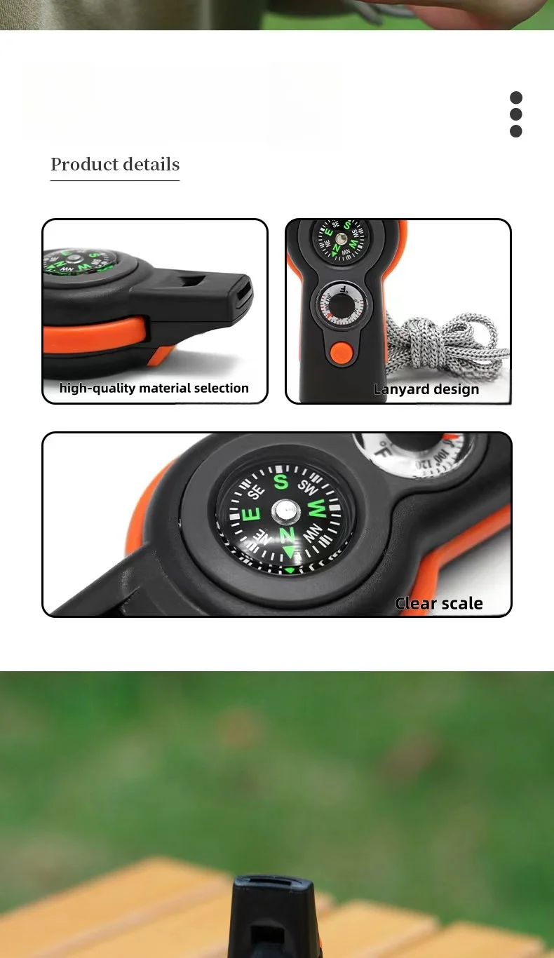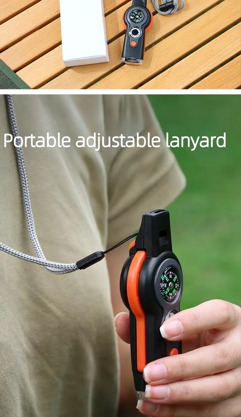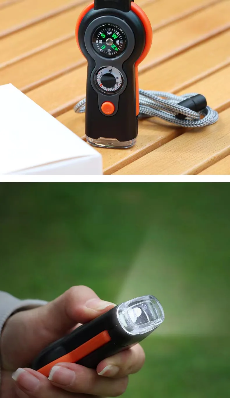 El producto es sólido y está bien fabricado, el cordón es resistente... PERO necesita ser rediseñado. . . (1) no hay forma de cambiar o recargar la batería (2) el espejo y la lupa son demasiado pequeños (deberían tener el tamaño del círculo central y superponerse entre sí dentro del estuche) (3) el termómetro está en *F, no *C. (4) La brújula funciona.