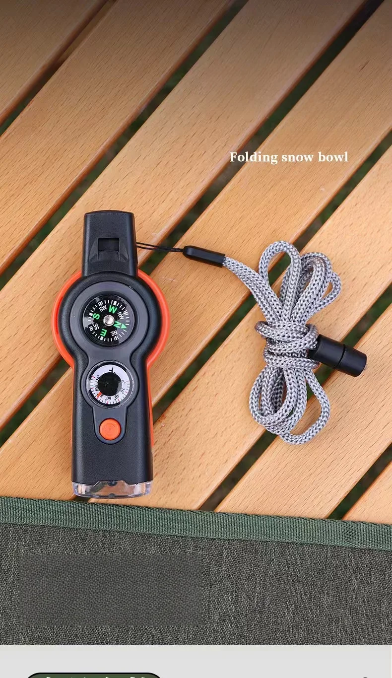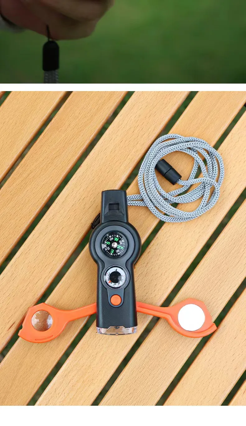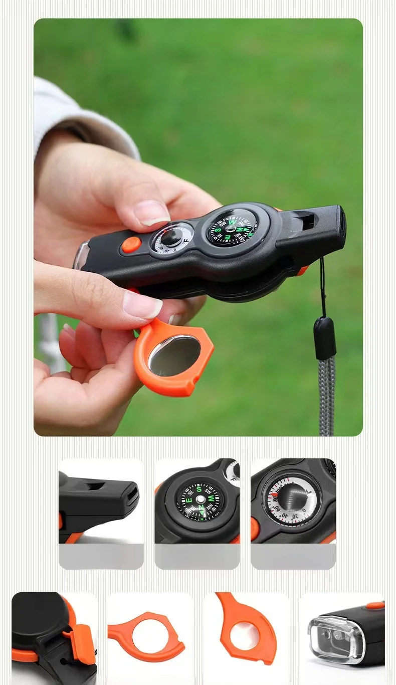 está muy bien de buen material la brújula funciona bien la probé, la temperatura también el silbato suena bien, la linterna es chica pero funciona y la lupa si es de juguete, pero está muy bien lo recomiendo para llevarlo en caso de emergencia será muy útil