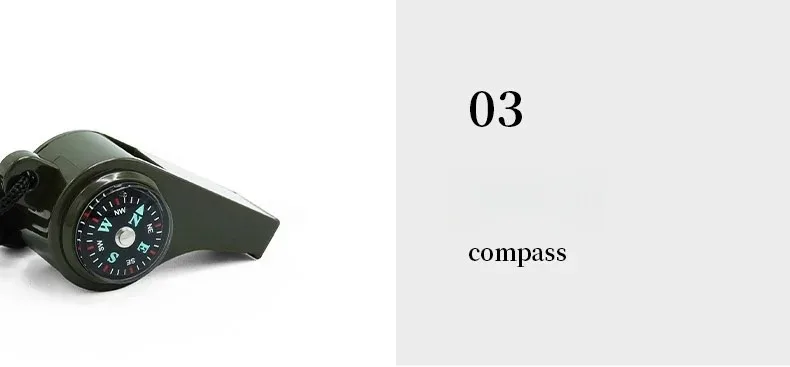 Silbato de supervivencia de emergencia 3 en 1 para acampar, senderismo, con brújula, termómetro, silbato para exteriores, herramientas para acampar, Color verde militar