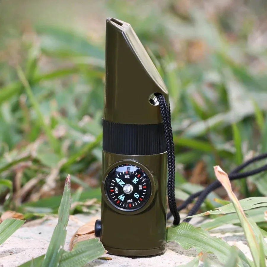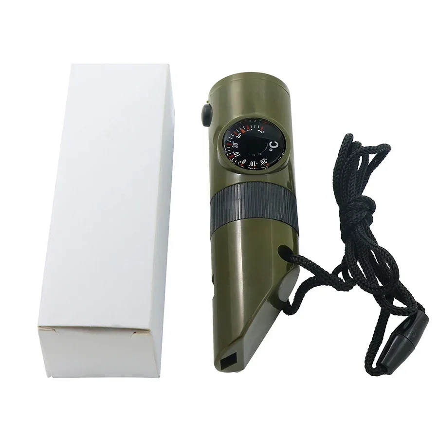 Silbato de supervivencia multifunción 7 en 1 con brújula y termómetro, ligero para acampar, hacer senderismo y aventuras al aire libre
