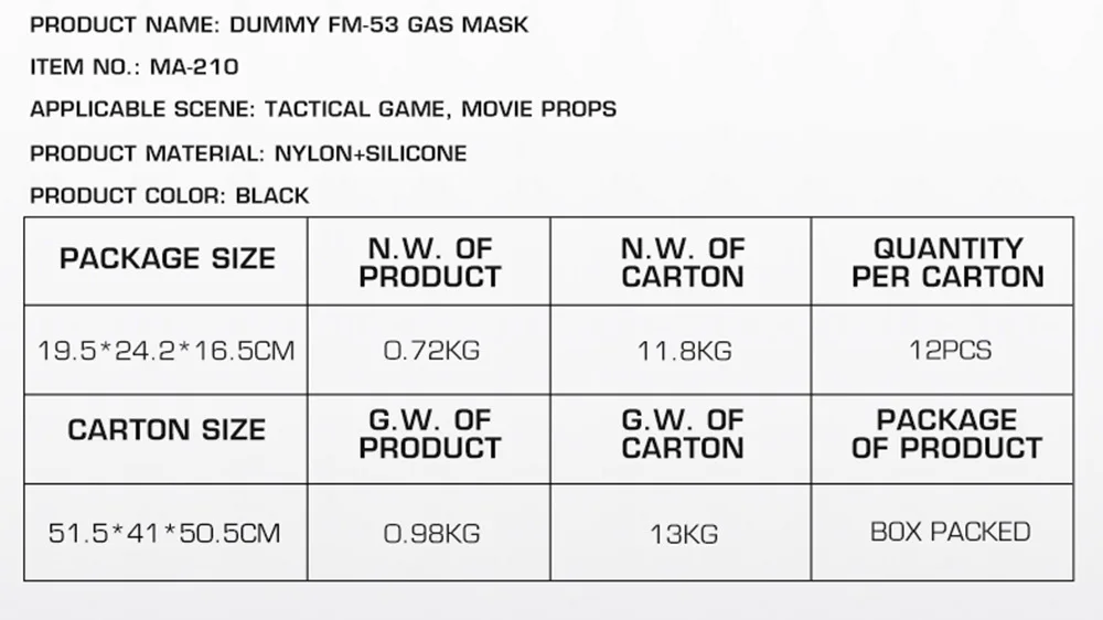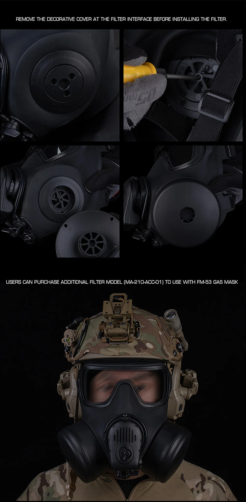 Nombre del producto: Accesorio de máscara de gas DUMMY FM-53 (modelo de simulación, no funcional)