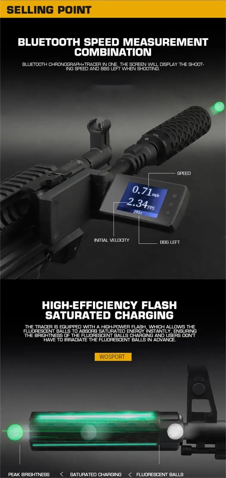 El flash está equipado con un flash de alta potencia. Permite que las bombas fluorescentes absorban energía al instante. Garantiza los requisitos de brillo de las bombas fluorescentes