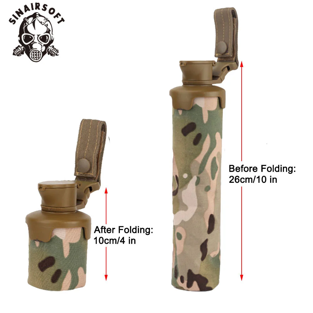 Protección duplicada. Aro y bucle, con botón en el interior, se puede sujetar al cinturón en caso de pérdida. Se adapta al sistema Molle. Es conveniente de usar y quitar.