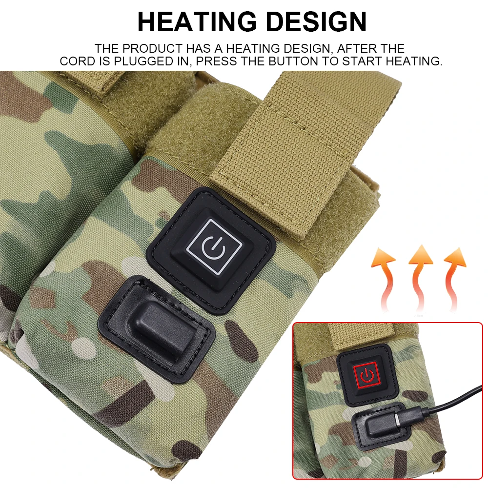 La capa interior es una capa protectora de gamuza, el aislamiento térmico es suave y no daña el cargador, dos capas: capa calefactora, sistema de calefacción compuesto, calentamiento rápido sin riesgos de descarga eléctrica, tres capas: superficie de tela de nailon 500D, duradera