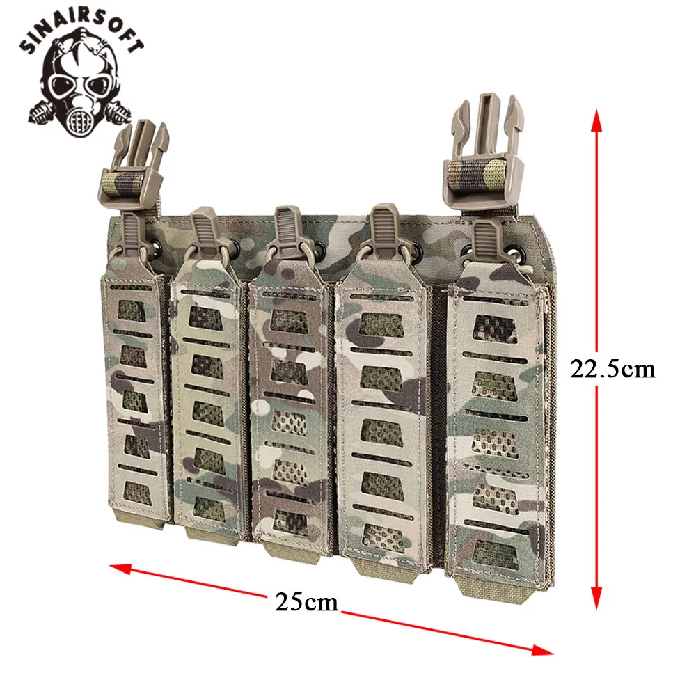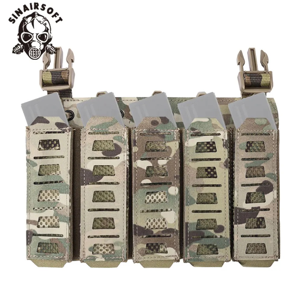 2Con capacidad para cinco cargadores MP5/MP7 con retenedor de cordón de choque ajustable y extraíble y lengüeta de correas.