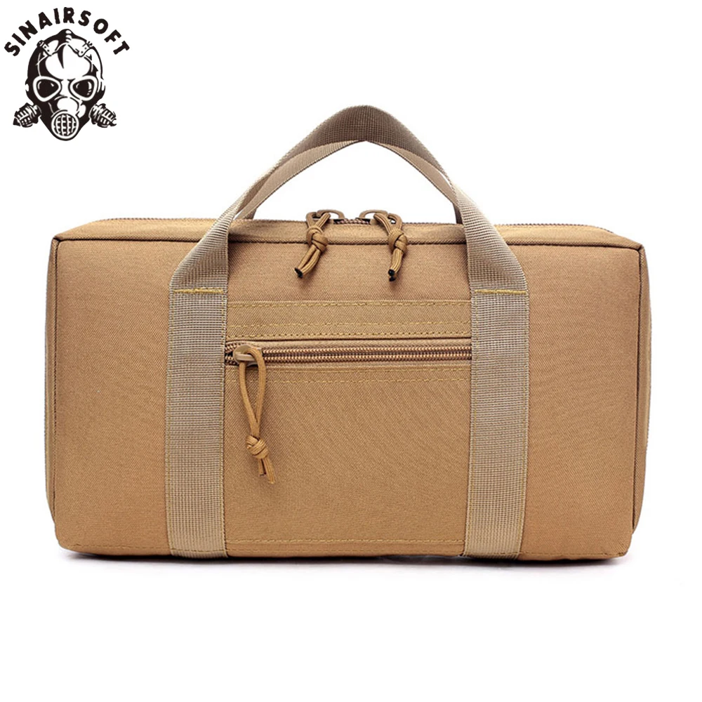 1) Fabricado con material de nailon de alta densidad.2) Con 2 piezas de correa de mano.3) sostener Puede 2 armas, como una pistola.4) Con 7 soportes de correa elástica para linterna, engranajes pequeños, carcasa, revista, etc.5) Un compartimento acolchado de espuma con cierre de cremallera.6) El diseño acolchado de espuma brinda protección completa.Especificaciones:1) Material: nailon 600D duradero2) Peso: 200g3) Color: MC,MCBK,BK,CB,OD,ACU4) Tamaño: 13 "(L) x 7"(H) x 2,75 "(T)(33x18x7CM)5) Se adapta a la mayoría de las pistolas automáticasLista de embalaje