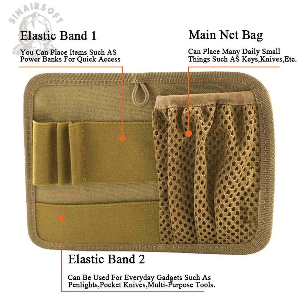 Almacenamiento de sujetadores elásticos para bolígrafos tácticos, linternas, llaveros, multiherramienta, cuchillos, teléfonos y otros dispositivos útiles.