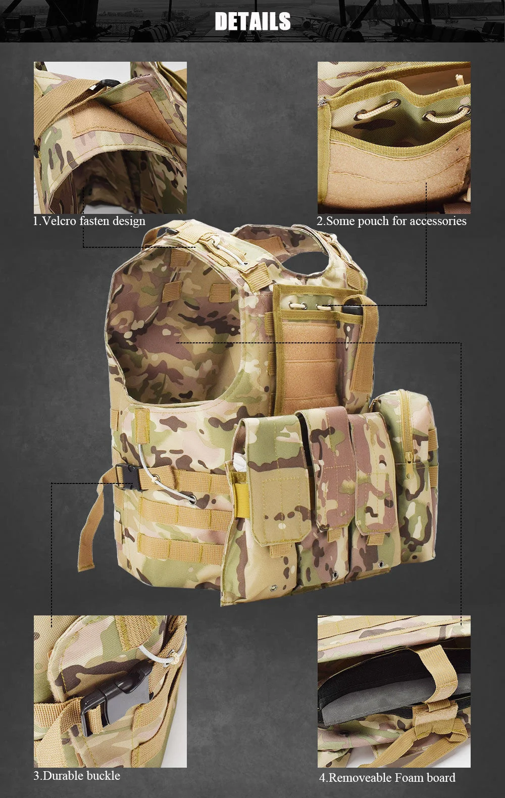 Feature:Net Weight:About 1.1 kgColour:BK,DE,CP,OD,WL.Amphibious Battle Tactical Vest:①It Has Automatic Disintegration Function, if Wounded, Fell Into The Water, Pulling The Cable, Automatic Disintegration, Saving Rescue Time. So in Normal Use, You Can Not Dismantle Cable.②Front Vest With Protective Plate, Anti-Hitting, But Not Bulletproof. You Can Prepare Your Own Bullet-Proof Material, To Be Replaced.③Chest Protector Can Be Installed To Protect Your Heart.1: This is no ordinary clothing, we sell the most professional tactical vests, military special.2: with the disintegration of the automatic function, in the water, shot, wounded, they can take off quickly, saving valuable time, a few seconds may save your life.3: Our products are factory produced military, not an ordinary garment factory4: front vest with protective plate, anti-hitting, but not bulletproof. You can prepare your own bullet-proof material, to be replaced.5: chest protector can be installed to protect your heart.6: Please note that the same picture, does not mean that the product is the same. Only our product is the most perfect. Choose us you can not go wrong.Professional sales USMC Airsoft Tactical Military Molle Combat Assault Plate Carrier Vest Tactical vest 10 Colorssize: weight 110kg, height 191cm.This is a professional tactical vests, army special. It has automatic disintegration function, if shot, wounded, fell into the water, pulling the cable, automatic disintegration, saving rescue time. So in normal use, you can not dismantle cable