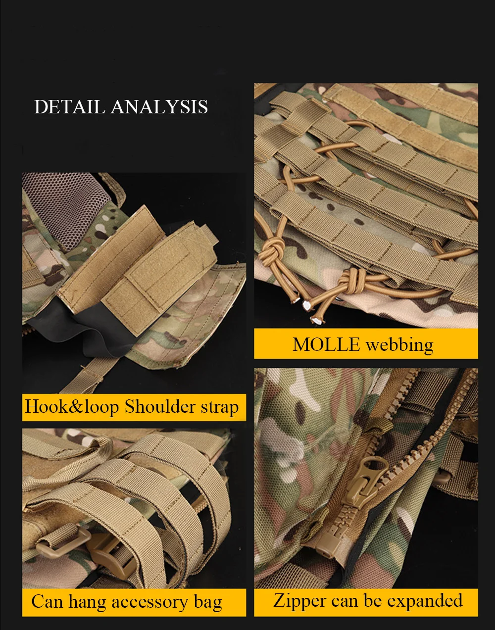 Placa frontal de golpe (placa de armadura) tamaño H300 * W260mm aproximadamente 10 "x 12" Grosor: 30mm El chaleco no incluye la placa frontal de golpe (placa de armadura), tienes que comprarlo por separado.