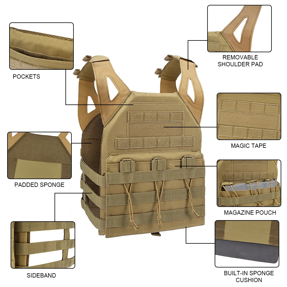 ②Diseño minimalista (Cobertura del pecho) Para máxima movilidad, bolsas integradas para revistas en la parte frontal del transportista (Capacidad para 3x 6,56 mm Mag)