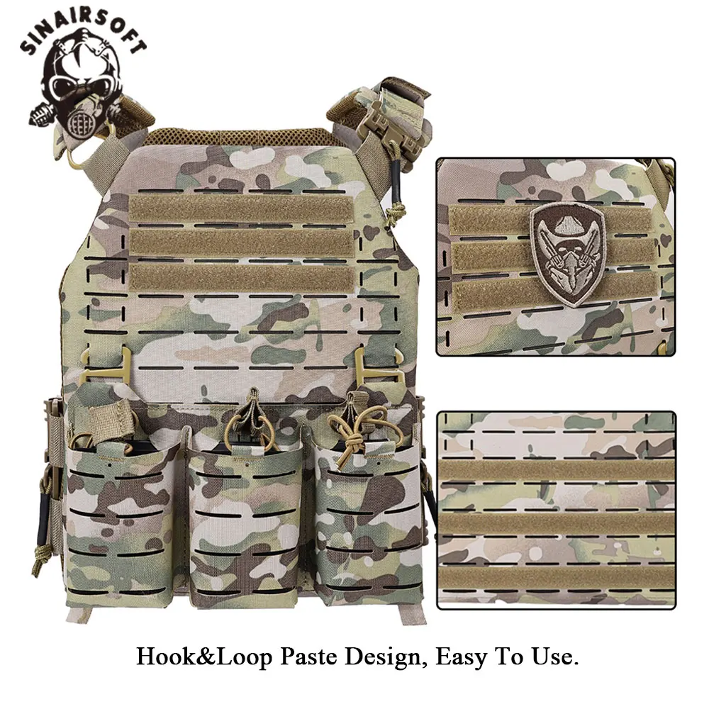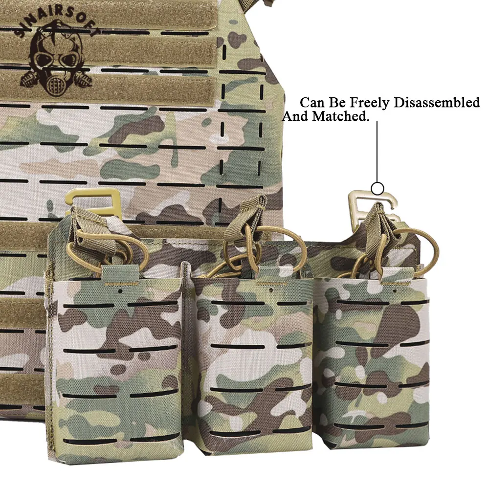 ⑦El panel frontal del abdomen se puede equipar con una bolsa de accesorios adecuada según la escena y otros paneles se pueden reemplazar al mismo tiempo.Se fija mediante una hebilla tipo G, que es más confiable.