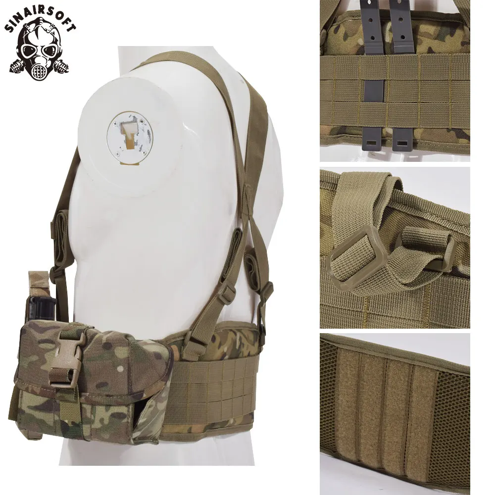 SINAIRSOFT Cinturón táctico Molle Backband con bandolera Camuflaje CS Cinturón acolchado Cinturón 1000D Nylon Chalecos de caza Accesorio