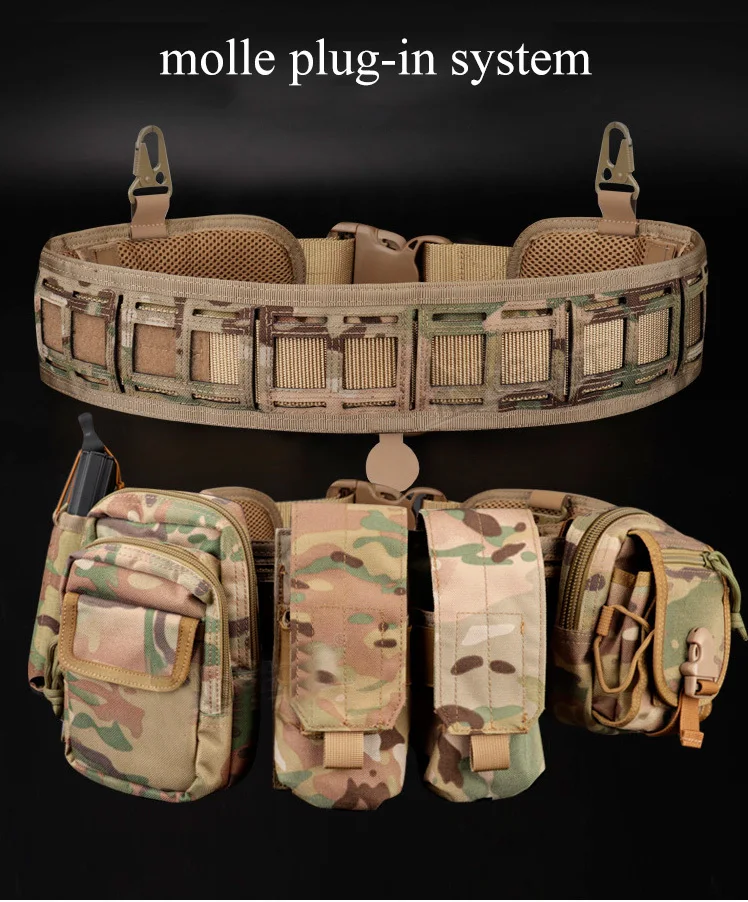 Diseño Molle, puede montar bolsas, fundas y jaulas molle.